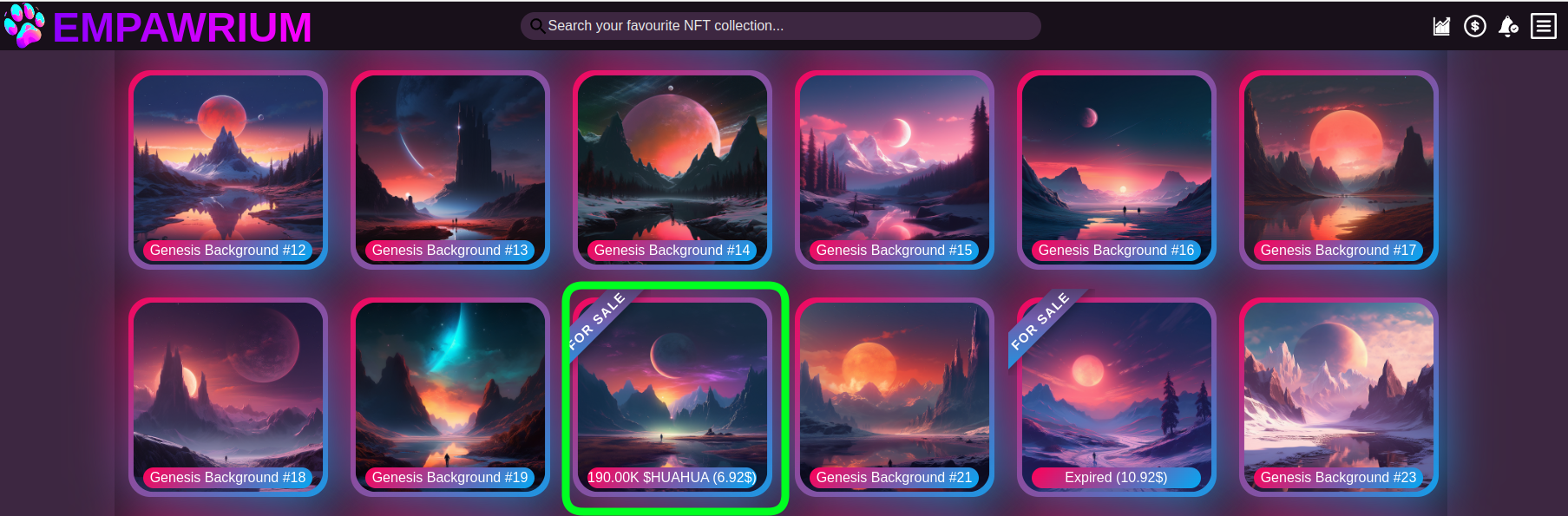 * After you have found an NFT you want to purchase, you can click on it from the collection page (highlighted in green below).
